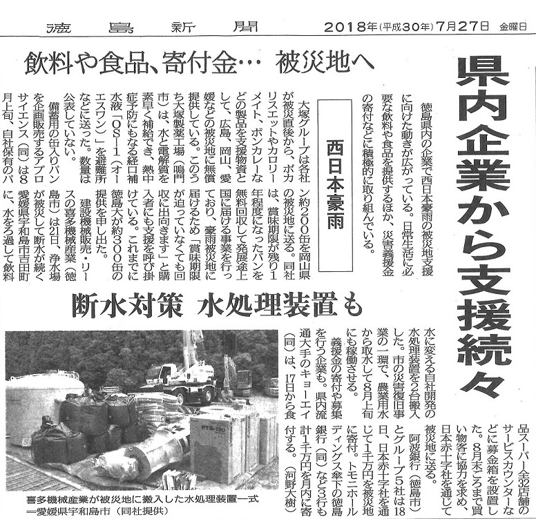 災害の状況が分かり始めてすぐ、弊社オリジナル飲料用水処理機【TGAL】ティーガルの出庫要請が入り、すぐに現地に設置に行きました。