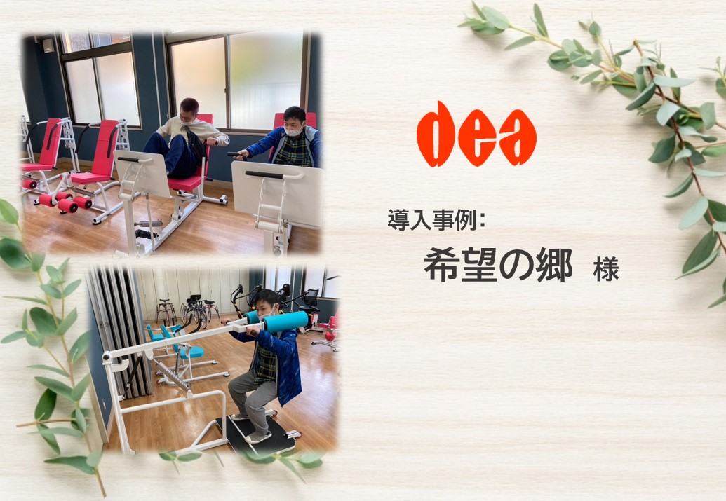dea導入事例 接骨院や病院、アスリートのリハビリテーション用にも 大人気のdea。 障害者支援施設 希望の郷 リハビリ施設にdeaを納入していただきました!! 利用者の皆様にも早速使っていただきました😊✨✨ deaについてはこちらから✨✨