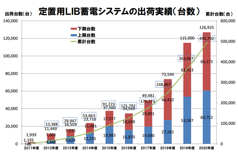 昼間、太陽光発電で余った電力を蓄電し、発電量が少ない時間帯などに使用。